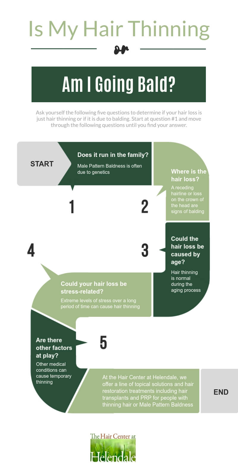 But how can you tell if your hair is thinning or if you are going bald? We put together this list of questions to help you determine if your hair loss is leading to baldness or hair thinning, so you know how to properly address it.